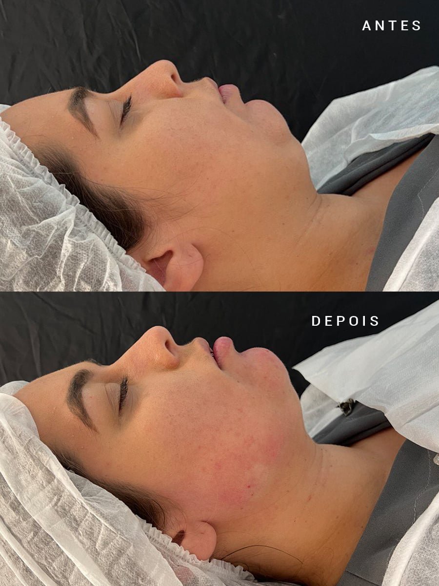 Elimina o queixo duplo, melhora a linha da mandíbula e reduz a gordura do pescoço.